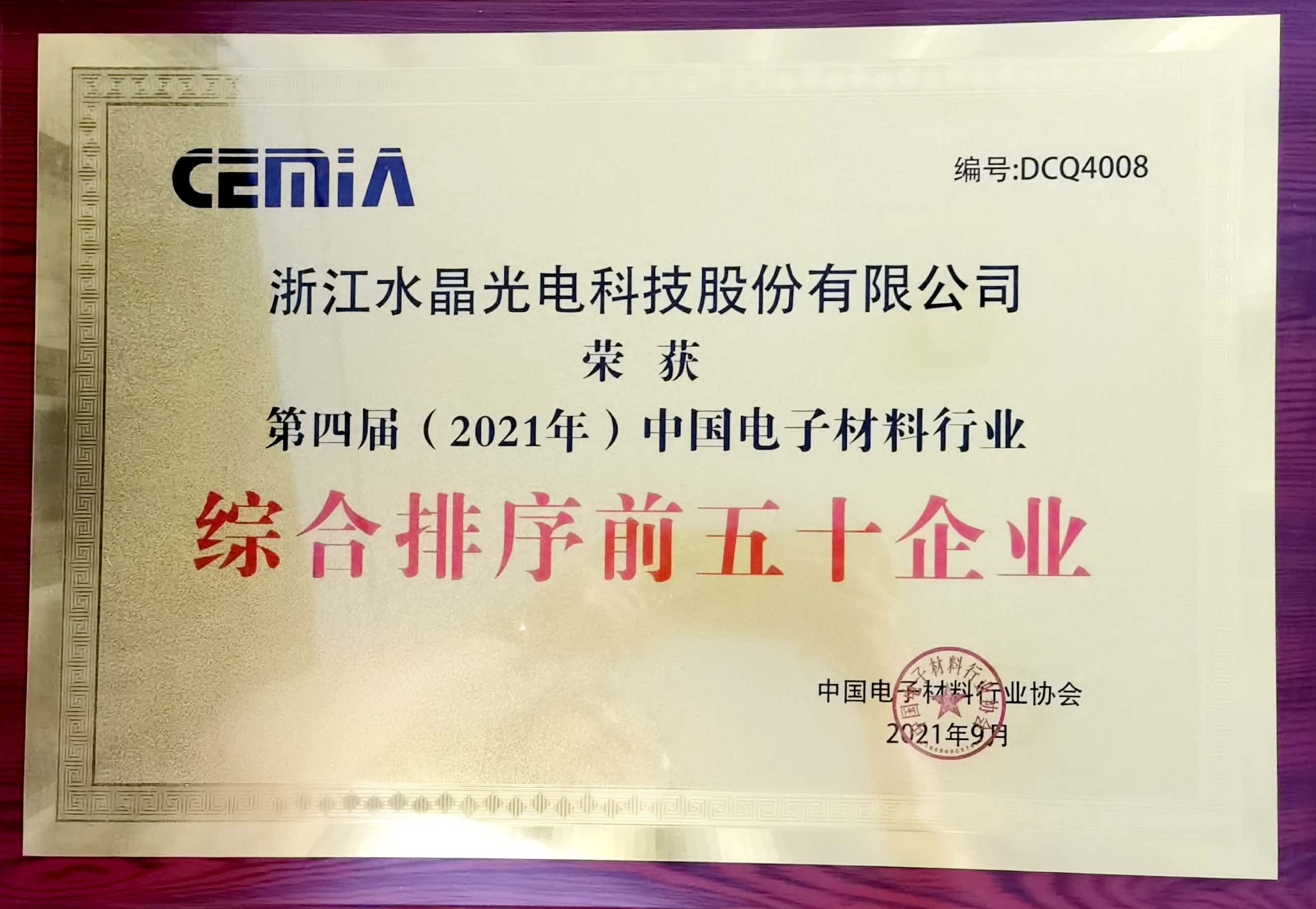 第四屆(2021年)中國電子材料行業(yè)協(xié)會(huì)綜合排序前50企業(yè)