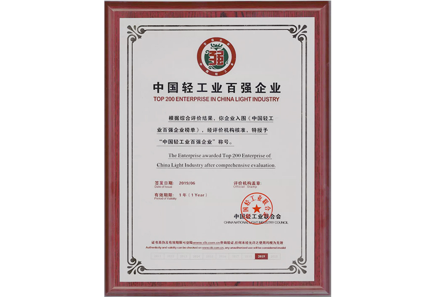 2020年度“中國(guó)輕工業(yè)二百?gòu)?qiáng)企業(yè)“