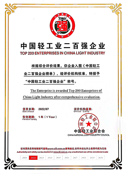 2021年度中國(guó)輕工業(yè)二百?gòu)?qiáng)企業(yè)