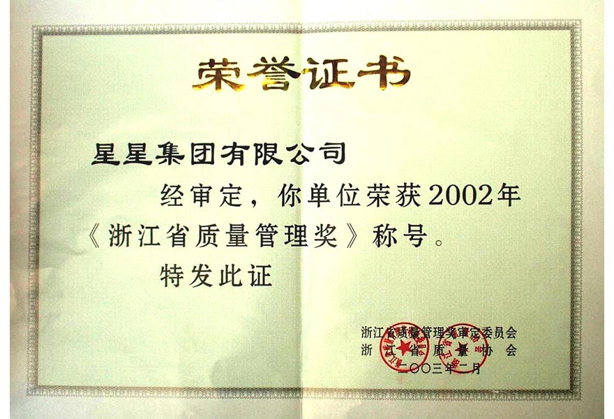 2003 浙江省質(zhì)量管理獎證書