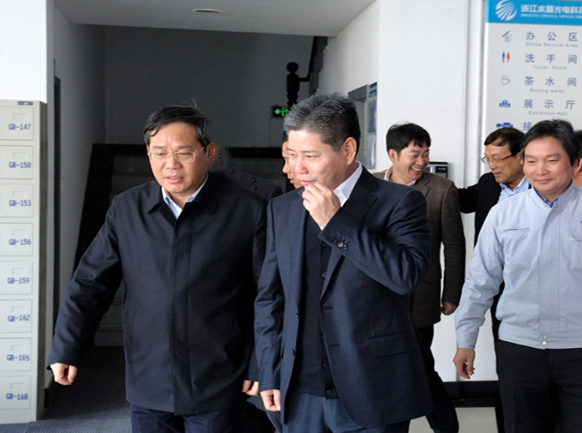 2013年2月16日,浙江省委副書記、省長李強(左一)蒞臨我集團水晶光電...
